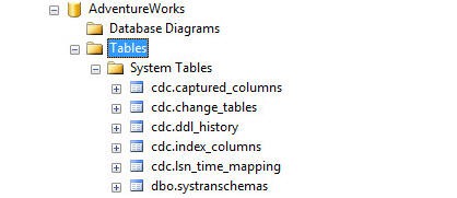Some System Tables will have been created within the AdventureWorks database as part of the cdc schema.