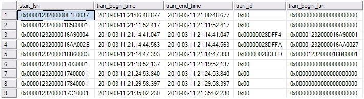 select * from cdc.lsn_time_mapping