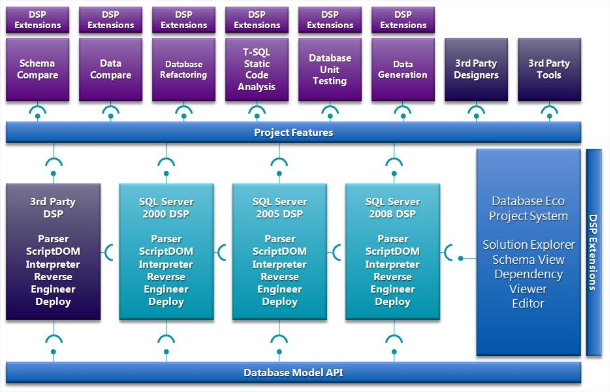 - Publicly extensible in Visual Studio 2008 Team System Database Edition GDR and later versions.