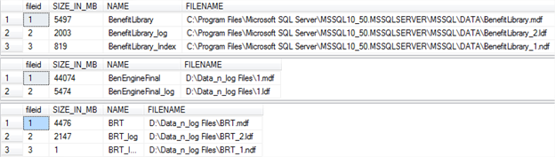 PRINT 'DATABASE FILES FOR: ' + @dbname