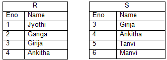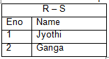 S is simply the cross product of these two relations. Joining can be done between any set of attributes and need not be always with respect to the primary key and foreign key combinations.