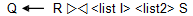 Here list l specifies list of attributes from R and list2 specifies a list of attributes from S.