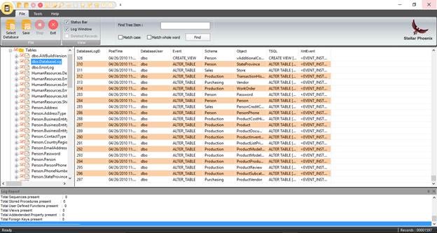 Note: At this juncture we were impressed by the level of detail that the tool presented. After finding recoverable data, the software displayed all information such that we could look at the database, examine all objects and even see the data for individual tables. And we could preview whatever we liked.