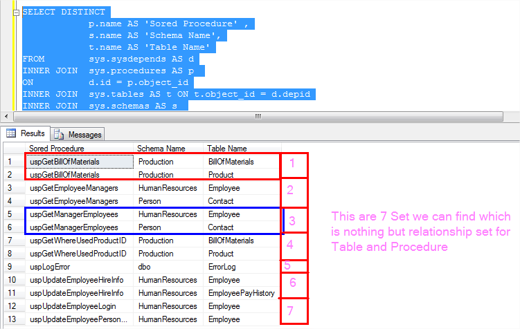 BISQL # 89 – How to establish / Find relationship between Table and stored Procedure in Database