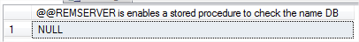 SELECT @@REMSERVER AS '@@REMSERVER is enables a stored procedure to check the name DB'
